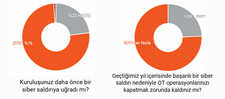 Palo Alto Networks’ün 2024 OT Güvenliği Raporuna göre endüstriyel kuruluşlarla yapılan ankette, daha önce bir saldırıya siber uğradınız mı sorusuna %76 oranında evet yanıtı veriliyor. Dahası, bu kuruluşların %25’i bu saldırılar sonucunda operasyonlarını geçici olarak durdurmak zorunda kalmış.